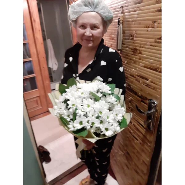 Спасибо, искала ромашки, но ромашки видимо сложно найти в это тяжелое время. ))). Но этот букет ничем не уступает в ромашкости ))). Очень высокие хризантемы почти 1 метр. Огромный букет, если будите заказывать 21 ветку. Однозначно рекомендую.