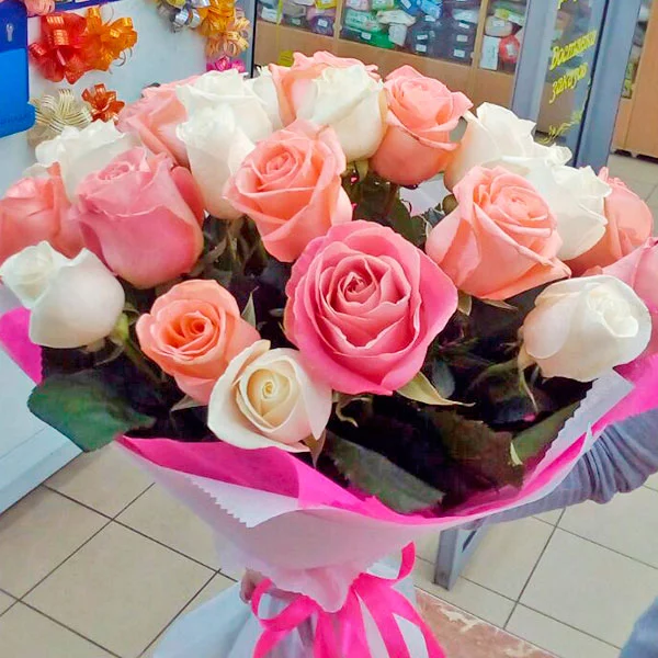 Заказывал букет для сестры на 18-ти летие. Все сделали красиво, розовые розы были ярко-розового цвета. Но тем даже лучше. Учли все мои пожелания. Спасибо Вам)
