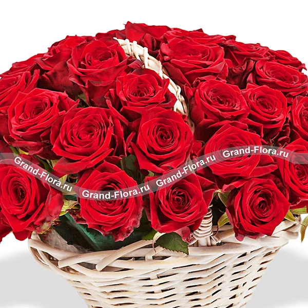 55 роз: роза красная - 55 шт., оазис, корзина.