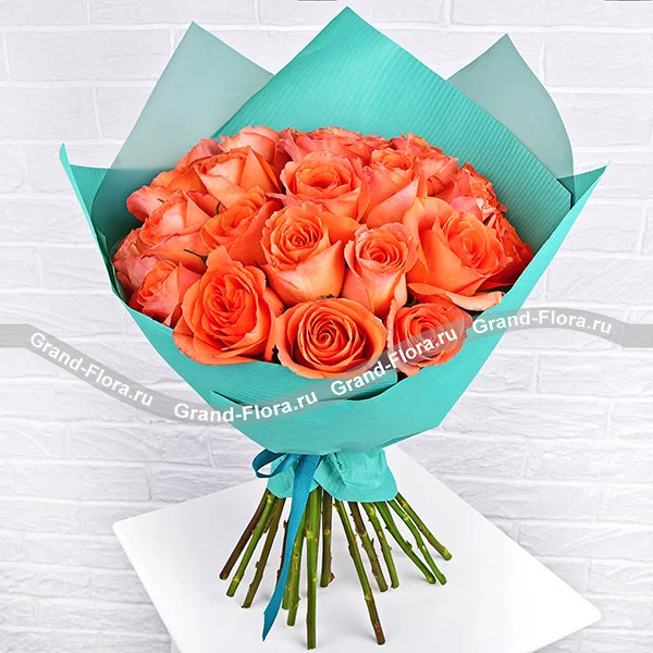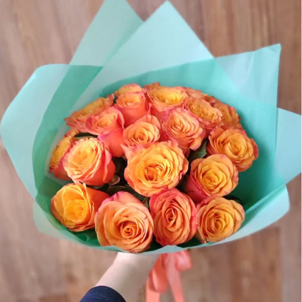 Внимание: сорт роз может отличаться от сорта на картинке, оттенок допустим от ярко-оранжевого (сорт Нина) до светло-оранжево-желтого