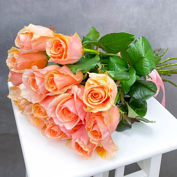 Букет розово-персиковых роз 50 см
