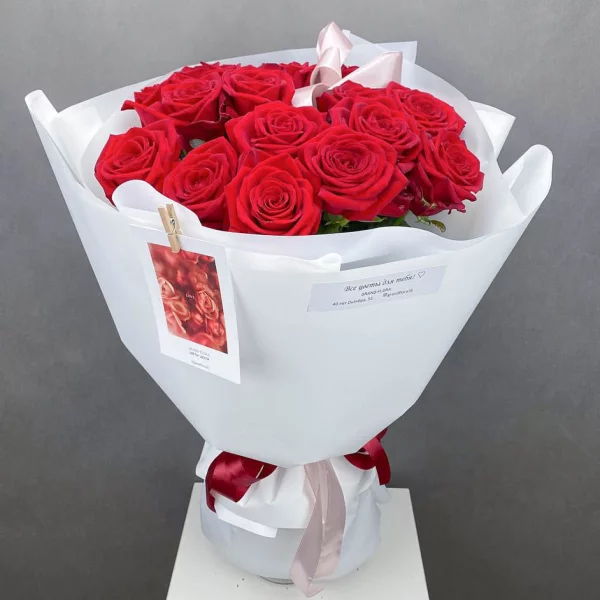 Букет из красных роз в современной сдержанной упаковке - это отличный цветочный подарок по любому поводу. Розы имеют длину стебля около 60 см. а оформление в светлую упаковку придает букету естественность и изящество. Данный букет отражает самые последние модные тенденции во флористике, а именно трендовая упаковка и классическое исполненине. Безошибочный подарок для любимого человека, котороый подарит вашему получателю массу положительных эмоций.