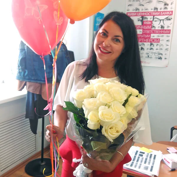 Здравствуйте!!!Хочу поблагодарить и сказать огромное спасибо всем кто принимал участие в оформлении заказа , доставке букета!!! Спасибо вам большое!!! Я очень переживала,т.к. читала отзывы... Но я знала,что мой букет доставят вовремя и цветы будут свежими. Все так и случилось. Позвонила моя сестра, которая живет в г. Когалыме, она была очень счастлива!!! Цветы были шикарными, 11 белых роз и открытка написана от руки, это здорово!!! Я обязательно воспользуюсь вашей службой доставки цветов.Спасибо вам еще раз!!!